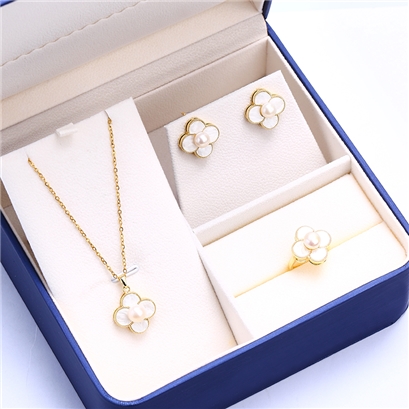 法国奥利维拉珍珠三件套四叶草C3-1291-1 |