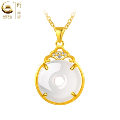 中国黄金珍尚银天然高冰冰透玉髓mini平安扣项链 (福利,品牌体验款)SK15312 |