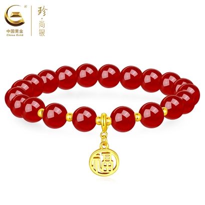 中国黄金珍尚银天然冰透玛瑙经典小福牌手串(红色天然红玛瑙)SK8220803 |