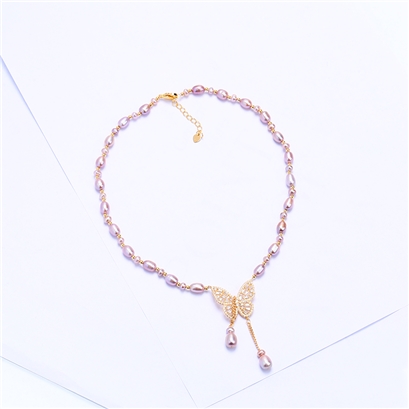 法国奥利维拉紫色珍珠项链蝴蝶扣 C2-2816-1 |