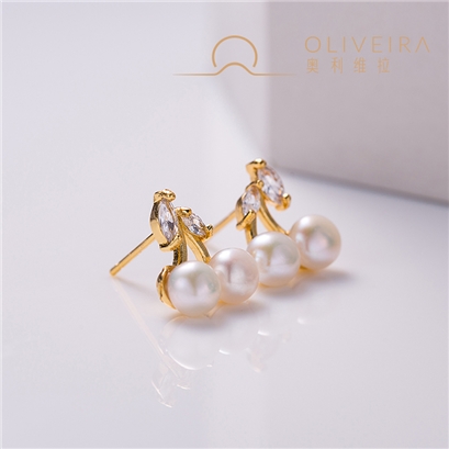 法国奥利维拉白色珍珠耳饰小樱桃耳钉C1-3186 |