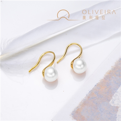 法国奥利维拉白色珍珠耳饰高跟鞋耳钩C1-3397 |